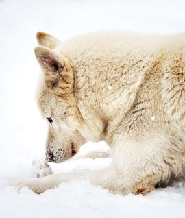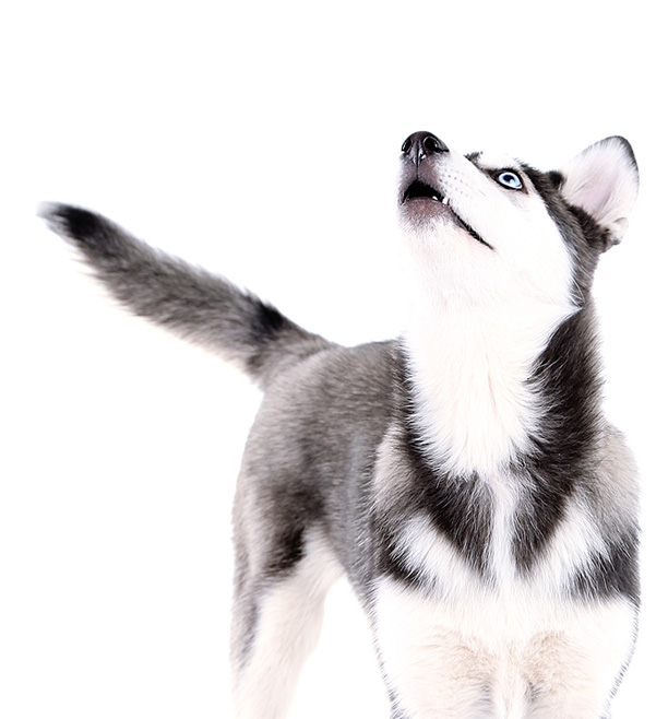 The Siberian Husky is a medium-sized working dog, quick and light on his feet and free and graceful in action. His moderately compact and well furred body, erect ears and brush tail suggest his Northern heritage.